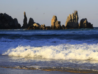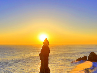 동해 1박 2일 여행코스 추천 여섯 번째! 추암해변은 기암괴석이 늘어서 있는 해안절벽과 고운 백사장이 아름다운 해변이다. 해변의 크기는 작은 편이지만 절경을 감상하기엔 충분하다. 추암해변은 해돋이 명소로 유명한데, 그중에서 추암촛대바위는 사시사철 여행객의 발길이 끊임 없는 명소 중 명소다. 애국가 방송 첫 소절의 배경화면에 등장을 하는 바위는 하늘을 향하여 올곧게 뻗은 기암 끝에 해가 걸려 있는 모습이 촛불 같아 ‘추암촛대바위’라고 불린다.