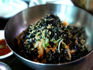 강화도 맛집 베스트 10 아홉 번째! 묵밥으로 유명한 곳이다. 대접에 길게 썰린 묵과 양념, 김, 야채를 얹어 내오는데, 여기에 밥을 넣고 육수를 부어 비벼 먹으면 된다. 볶은 김치와 먹는 직접 만든 손두부 역시 인기이다.