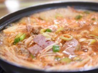 군산 맛집 베스트 10 아홉 번째! 군산 미군비행장 앞에서 부대찌개를 팔았었다고 전해지면서 생긴 이름의 부대찌개 식당으로 야채와 햄 등이 풍성하게 들어가는 것이 특징이고 계란후라이 등의 밑반찬이 많이 나오기로 유명하다.