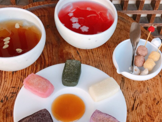 - 메뉴 : 색동인절미구이(8천5백원), 동장윤다(1만5천원), 귤생강차(9천5백원), 물그림자(1만2천원)