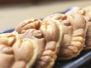 영덕 카페 추천 세 번째! 영덕대게빵은 30년 장인의 기술로 탄생한 영덕특산품이다. 찰보리와 고구마, 붉은 대게의 만남으로 달지 않고 촉촉하며 대게의 맛과 향이 난다. 반죽에 일정량의 대게 가루가 들어가며 고구마 속에도 대게가루를 넣어 틀에서 1~2분간 구우면 완성된다. 1박스에 20개입으로 박스당 주문이 가능하다.