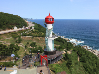 영덕 1박 2일 여행코스 추천 첫 번째! 전국 제일의 청정해역과 울창한 해송림으로 둘러쌓여 있던 창포리 동해안 일대가 1997년 2월 대형 산불로 페허가 되어 방치되다 4년간의 노력으로 수려한 해안절경과 무인등대를 활용한 인공공원을 조성하였다.