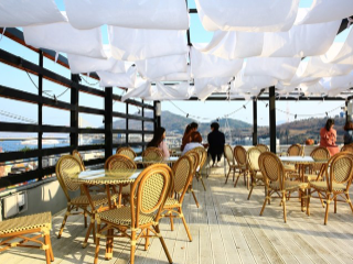 여수 카페 추천 베스트 다섯 번째! 여수에서 바다를 볼 수 있는 루프탑 테라스를 가진 카페 듀이다. 하얀 천이 하늘에서 휘날리며 바다와 함께 어우러지며 아기자기한 인테리어를 자랑한다. 무엇보다 바로 앞에서 바닷바람을 느낄 수 있다는 것이 장점이다. 거북선 대교와 돌산 케이블카를 볼 수 있어 한 눈에 여수의 관광지를 볼 수 있다.