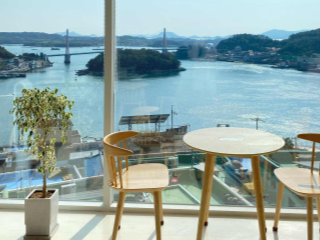 여수 카페 추천 베스트 네 번째! 정면으로는 장군도와 돌산대교가 왼쪽으로는 거북선대교와 케이블카가 보이는 예쁜 바다 뷰 카페이다. 아메리카노는 고소한맛 원두와 새콤달콤한 과일향의 원두 2가지를 사용하여 선택하여 맛볼 수 있다. 직접 담근 청을 쓰고 레몬, 자몽은 착즙하여 메뉴를 만든다.