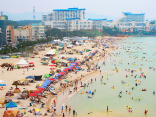 삼척 1박 2일 여행코스 추천 두 번째! 삼척시내에서 1.4km가량의 근거리에 위치하고 있으며, 연장 1.2km, 폭 100m의 넓은 백사장을 보유한 관내 최대의 해변이다. 울창한 송림, 깨끗한 백사장과 수심이 얕아서 남녀노소 모두가 수영을 즐길 수 있고, 각종 부대시설 및 편의시설이 비교적 잘 갖춰져 있다. 또한 테마타운 내 근린시설이 완비되어 있으며, 싱싱한 활어회를 먹을 수도 있다.