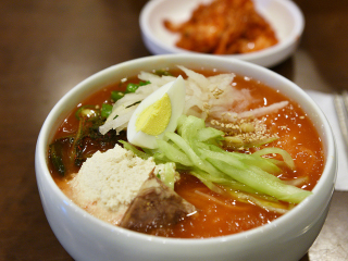 포천 맛집 추천 베스트 10 두 번째! 숙성 발효시킨 김치국물에 사골, 사태, 우골 세 가지 종류의 육수를 혼합하여 새콤하면서도 담백하고 구수한 국물 맛으로 인기이다. 국수 이외에도 곰탕, 만두국, 녹두전도 인기이다.