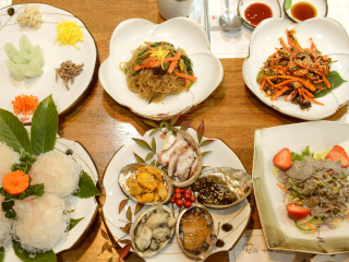 진주 맛집 추천 리스트 일곱 번째! 정갈한 한국의 맛을 볼 수 있는 한정식 전문점이다. 궁중정식일 경우, 죽, 샐러드, 해물, 활어회, 전복요리, 육회, 갈비찜, 장어구이, 녹두빈대떡, 탕수육, 오이선, 궁중두부선, 해파리냉채, 단호박범벅, 생선구이, 생선찜, 회냉면, 삼색전 그리고 15가지 이상의 찬과 식사가 제공된다. 돌, 상견례, 피로연, 비즈니스 모임 전문이다. 맞춤메뉴도 가능하다.
