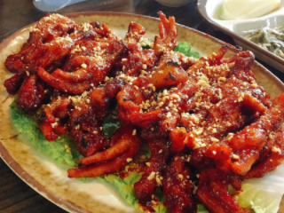 부산 광안리 맛집 베스트 10 추천 네 번째! 부산 수영구에 위치한 닭발로 유명한 맛집이다. 국내산 닭발과 조개탕만을 파는 곳으로 소주 한 잔을 기울이고 싶거나 스트레스를 저 멀리 날리고 싶은 이들에겐 제격인 장소이다. 야들야들하지만 입술이 금방 부어오를 정도로 화끈한 '닭발'과 시원한 국물에 매운맛을 가시게 해줄 '조개탕' 모두 인기이다. 포장 주문 시 미리 전화 후 방문하면 바로 받을 수 있다.