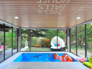 가평 풀빌라 펜션 추천 독채 베스트 세 번째! 힐앤폴하우스펜션에는 키즈 풀빌라 객실이 있으며, 프라이빗한 휴식이 보장되는 곳이다. 전 객실 개인 풀빌라로 스파, 수영, 바비큐 모두 방해받지 않고 프라이빗하게 즐길 수 있다. 게다가 아이가 있는 가족을 위한 독채 키즈 풀빌라도 있어 아이와 함께 여행하기에도 제격이다. 저상형 패밀리 침대와 놀이시설, 아이 식기까지 모두 갖춘 곳이다. 특히, 수영장은 음용 가능한 식수를 사용해 아이가 물놀이 중에 물을 먹어도 무해하며 온수 이용이 무료라는 점이 특징이다.