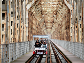 김해 1박 2일 여행코스 추천 네 번째! 김해낙동강레일파크는 김해 생림면 마사리 북곡마을 일원에 위치하고 있는 삼랑진에서 김해로 넘어오는 길목에 위치하고 있는 폐선된 경전선 철도를 관광상품으로 재탄생시킨 곳이다. 먼저 낙동강 철교에서 생림터널에 이르는 왕복 3km 구간에는 레일바이크가 달린다. 국내에 폐선된 철로를 이용한 레일바이크가 여러 개 있지만 강 위를 달리는 레일바이크는 김해가 유일하다. 생림터널은 와인동굴로 변신했다.