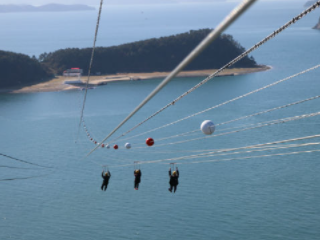 창원 1박 2일 여행코스 추천 두 번째! 해양레저관광의 새로운 랜드마크인 창원짚트랙은 99타워에서 소쿠리섬까지 1,399m를 최대시속 80km의 속도로 아찔한 공중비행을 경험할 수 있으며, 돌아올 때는 바다 위의 슈퍼카 제트보트로 되돌아온다. 그리고 창원짚트랙에서만 경험할 수 있는 엣지워크로 색다른 짜릿함과 아찔함을 느낄 수 있다.