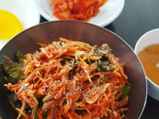 정읍 맛집 추천 베스트 여섯 번째! 대표 메뉴인 산채 정식을 주문하면 더덕구이, 시래기 볶음, 불고기, 버섯구이, 홍어찜, 된장찌개 등 돌솥에 담아 따뜻하게 먹을 수 있는 음식을 비롯해 전, 나물 무침, 조기구이 등의 정갈한 밑반찬을 한 상 가득 내어주는데, 산채비빔밥과 된장찌개 등의 간단한 식사 메뉴와 더덕구이, 해물파전 등의 요리 메뉴도 별도로 맛볼 수 있습니다.