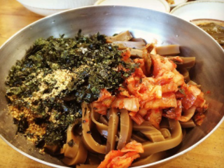 옥천 맛집 추천 베스트 세 번째! 도토리묵과 메밀묵 사발이 인기인 곳입니다. 메뉴는 메밀묵, 도토리묵, 그리고 메밀골패묵, 도토리골패묵 중에서 선택할 수 있습니다. 여름철에는 메밀이 나지 않기 때문에 도토리묵만 가능합니다. 도토리묵을 주문하면 도토리묵, 김치, 양념간장과 김가루를 담은 사발이 나오고 동치미국물이나 장국이 제공됩니다. 동치미국물은 40년 이상 식당을 운영해온 주인이 직접 만들어 그 특유의 맛으로 유명합니다.