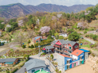 정원에는 골프퍼팅 연습장과 그네, 파라솔 야외 테이블, 바비큐를 드실 수 있는 그릴이 여러 개 마련되어 있으며, 특히, 높이 위치하고 있어 탁 트인 정원에서 바라보는 주변경치가 뛰어납니다. 주변 관광지로는 청계호수, 아침고요수목원, 허브아일랜드, 베어스타운스키, 운악승마장, 아트밸리, 전통 술 갤러리 등이 있습니다.