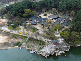 여주 1박 2일 여행코스 추천 세 번째! 영월루에서는 남한강 푸른 물줄기와 멀리 양섬과 강 건너 신륵사의 아름다운 전경을 한눈에 내려다볼 수 있다. 누각 아래 기암절벽 바위에는 '마암'이란 글자가 선명하게 새겨져 있다.