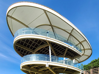 상주 1박 2일 여행코스 추천 두 번째! 상주보에서 경천대까지의 4~5km 길이의 풍경을 파노라마처럼 바라볼 수 있는 학전망대는 공모를 통해 설계됐으며 전체적으로 학 모양을 형상화한 것이다. 이 학전망대는 바위 위에 내려앉은 철새처럼 가볍고 산뜻한 느낌을 주며 산 중턱에 위치하여 주변의 숲과 자연스럽게 어울려 하나된 경치를 이루고 있다.