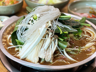 성주 맛집 추천 베스트 두 번째! 진한 간장 양념에 버섯과 시금치, 당면을 푸짐하게 올려낸 불고기가 대표 인기 메뉴입니다. 새불고기식당은 천연재료로만 맛을 내 간이 과하지 않으면서도 깊은 맛이 느껴지는 것이 특징입니다.