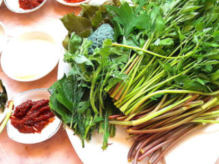 청도 맛집 추천 베스트 다섯 번째! 미나리 삼겹살은 삼겹살을 구운 뒤 미나리 잎 부분을 곁들여 먹는 메뉴입니다. 상큼한 미라니 향이 고기맛을 더해줍니다. 미나리는 따로 판매도 하고 있어서, 구입하여 집에 들고가 고기 구이에 곁들이는 손님들도 많다고 합니다.