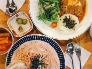 상수역 맛집 추천 베스트 첫 번째! 홍대에서 늘 줄서서 먹을 정도로 인기가 많은 맛집입니다. 윤씨밀방은 이 집 윤씨가 좋아하는 밀가루음식과 밀떡볶이라는 의미로, 식사 중 밀가루떡볶이가 무한리필 된다고 합니다. 머쉬룸 투움바 파스타, 윤씨함박정식, 왕만두가 특히 인기 메뉴입니다.