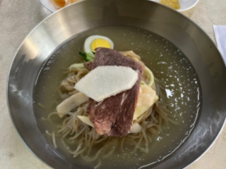 - 메뉴 : 물냉면(1만3천원), 회냉면(1만7천원), 녹두전(1만원), 수육(7만원)