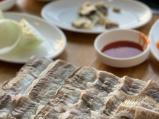 전남 여수 맛집 베스트 10 추천 여섯 번째! 1947년에 문을 연 삼학집은 약 70년 전통의 맛을 이어오고 있습니다. 최근 신축 건물로 이전해 삼학1947의 풀빌라를 같이 운영합니다. 대표 메뉴는 얇게 썬 서대회와 야채를 붉은 양념에 버무린 뒤 소복이 쌓아 고추, 마늘, 통깨로 장식해 손님상에 올리는 서대회 무침입니다.