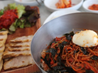 영종도 맛집 베스트 10 세 번째! 인천공항 근처의 막국수 전문점으로 늘 손님으로 북적이는 곳 입니다. 빨간 양념의 명태식혜를 올린 막국수와 돼지고기가 정갈하게 나오는 수육이 대표 메뉴입니다. 막국수는 달지 않고 양념의 맛을 많이 느낄 수 있는 편입니다.