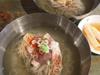 의정부 맛집 베스트 10 두 번째! 의정부동에 위치한 서울 대표 평양냉면집의 모태가 되는 평양면옥은 장충동 평양면옥, 필동면옥, 서북면옥의 원조격으로 메밀을 사용해 뽑아낸 면에 시원한 육수를 부어 고춧가루를 뿌려 내는 물냉면이 대표 메뉴입니다. 직접 빚은 커다란 손 만두와 돼지고기 수육에 매콤한 양념장을 곁들여 먹는 제육도 인기 메뉴로 냉면과 함께 주문하는 손님이 많습니다.