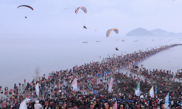 세계적으로 널리 알려져 있는 진도 신비의 바닷길은 고군면의 회동리와 의신면 모도 사이 대략 2.8km의 바다가 조수간만의 차이로 인하여 바다 밑이 40여 m의 폭으로 물의 위로 드러나 바닷길이 열린다는 데 그 신비로움이 있다. 매년 이 현상을 보기 위하여 국내외 관광객 수십여만 명이 몰려와서 바닷길이 완전히 드러나 있는 대략 1시간의 기적을 구경한다. 또한, 이날은 국내외의 관광객들을 맞아 진도 고유의 민속예술 등등을 선보이고 다양한 이벤트와 볼거리가 제공된다.